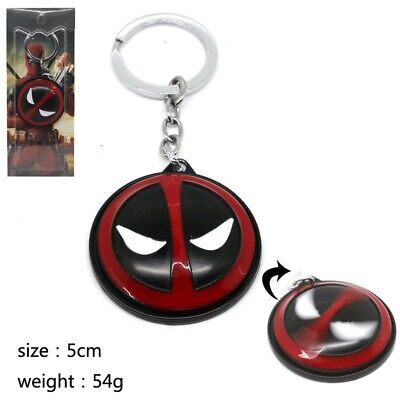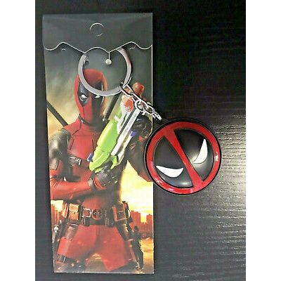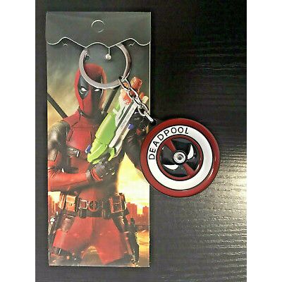 Deadpool keyring with spinning metal design. Comes in a sleek box, as shown in photos.