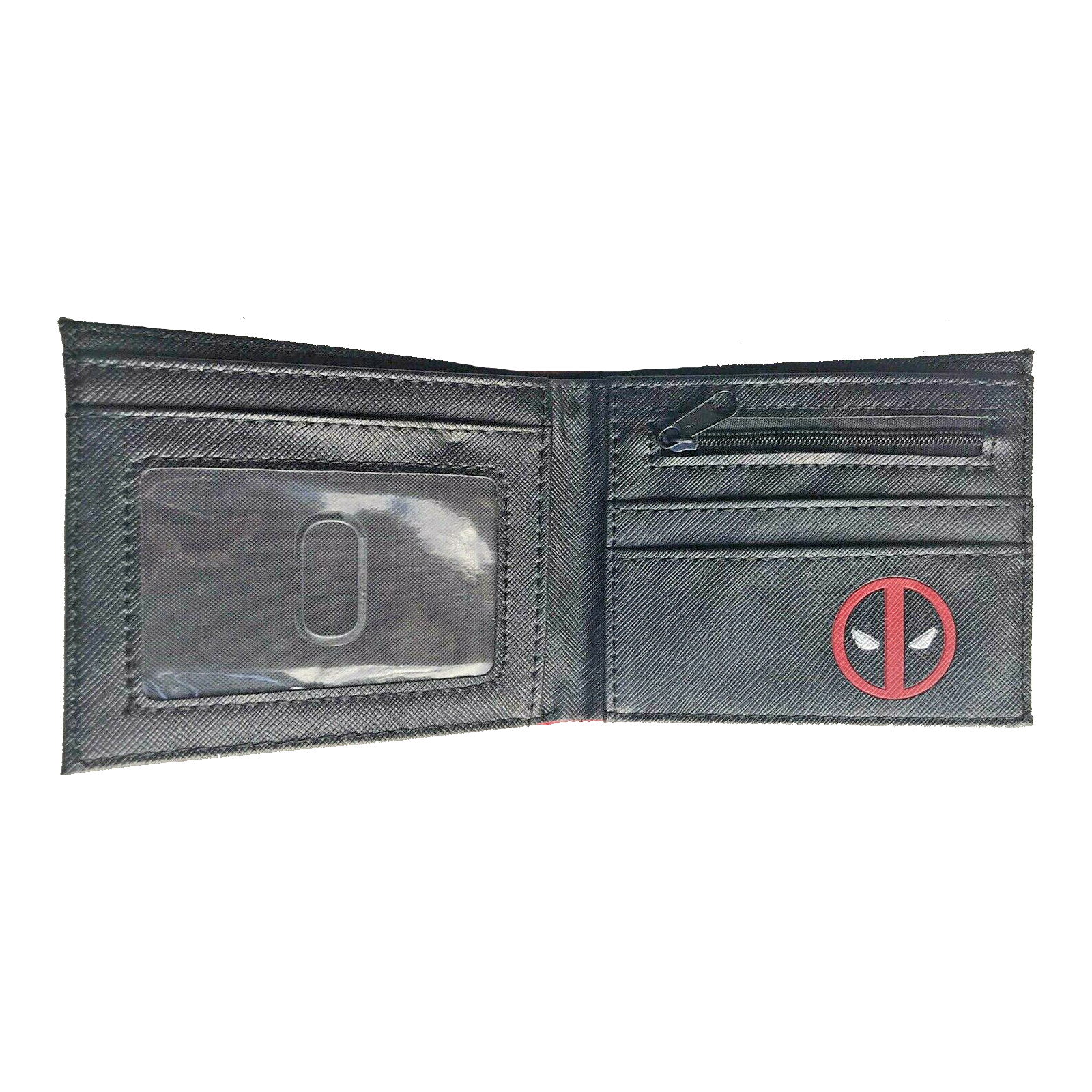 - This MARVEL Deadpool wallet boasts a sleek and stylish design with functional features for ease of use. It includes multiple credit card slots, a clear driver's license slot, and a zipper pouch for coins.