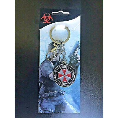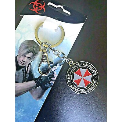 - This product is a solid metal keyring featuring the Resident Evil Umbrella Corp and Biohazard logos. It is 3.5cm wide and perfect for fans of the franchise.